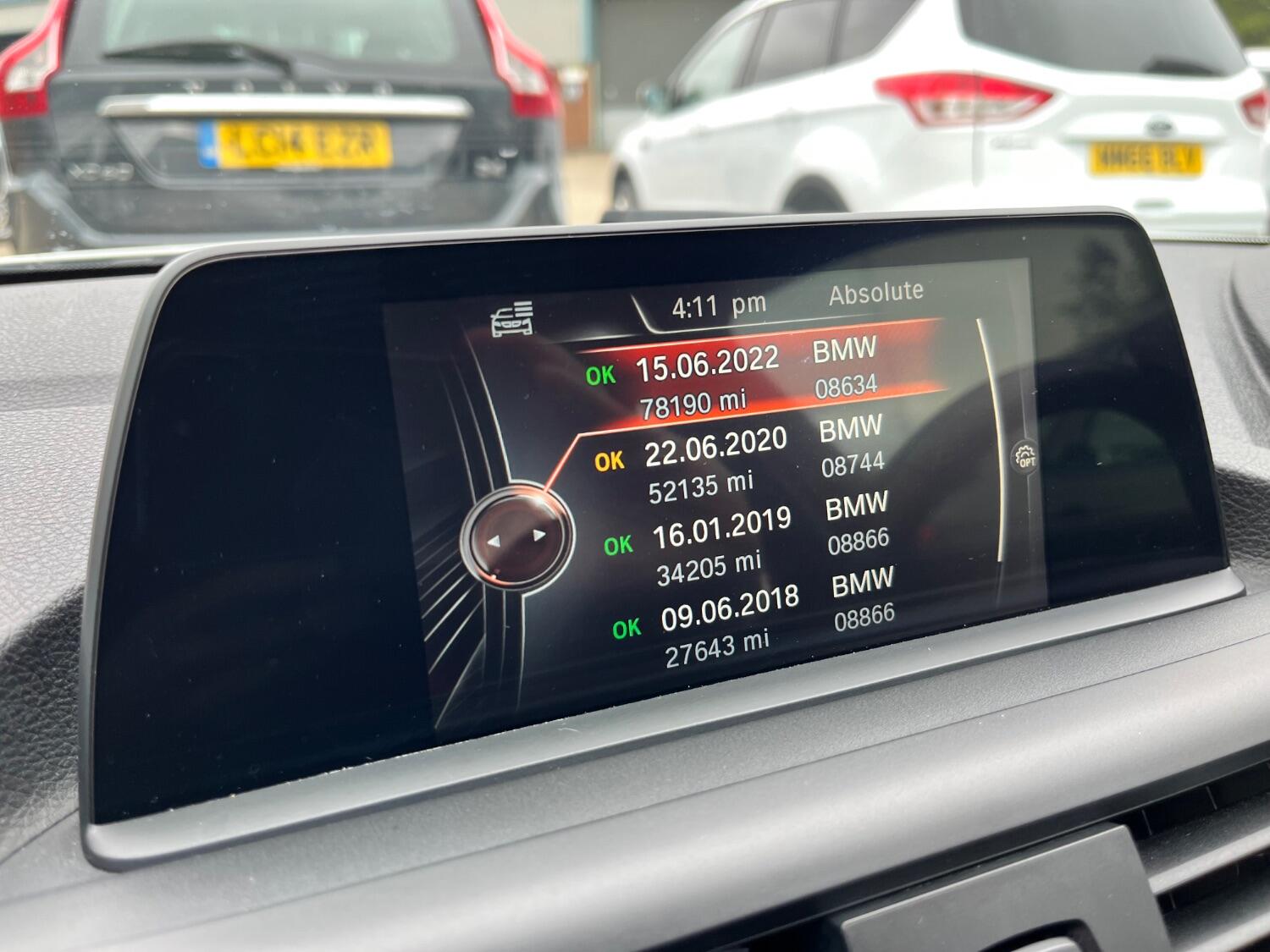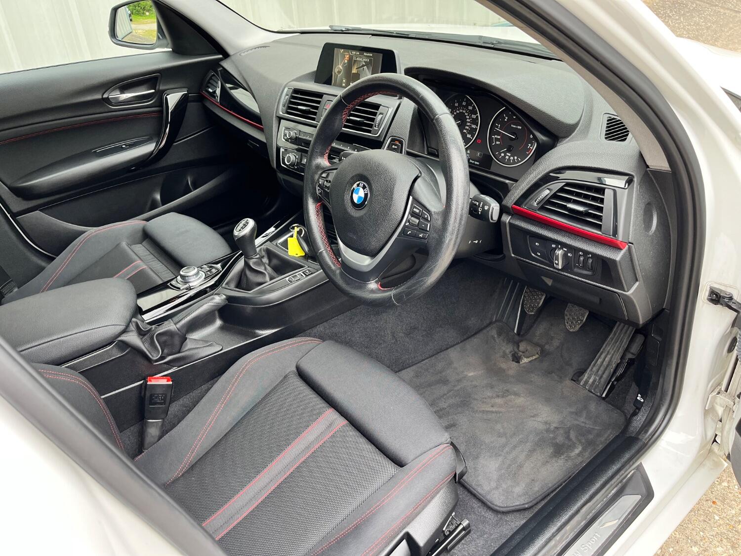 Upgrades - BMW Navigation Package, Enhanced Bluetooth Telephone Preparation with USB Audio Interface, Driver Comfort Package, Corner Cloth - Anthracite with Red Highlight, Alpine White, Standard Features - Bluetooth Hands Free with USB Audio Interface, DAB Digital Radio, BMW Professional Radio - Single CD and MP3, 6.5in Colour Display Screen, Air Conditioning - Manual, OBC - On-Board Computer, 17in Alloy Wheels - Light Double Spoke Star - 655, TPMS - Tyre Pressure Monitoring System, Drive Performance Control - ECO PRO - Comfort - Sport and Sport Plus, Ambient Lighting - Switchable BMW Classic Orange - Cold White - LED, Headlights - Automatic Activation, Rain Sensor, Central Locking - Remote, Electric Windows - Front and Rear with Open-Close Fingertip Control, Door Mirrors - Electric and Heated, Armrest - Front with Sliding Adjustment, Alarm System Thatcham 1 with Remote Control, Airbags - Passenger Deactivation, Child Seat ISOFIX Attachment - Rear, Daytime Running Lights, DTC - Dynamic Traction Control, Front Fog Lights, Halogen Headlights, Heat Protection Glazing with Green Tint, Heated Windscreen Washer Jets, Hill Start Assist, Multifunction Controls for Steering Wheel, Seats - Driver Manual Adjustment, Seats - Passenger Manual Adjustment, Speed Limit Function, Sport Seats - Front, Steering Column with Manual Reach and Rake Adjustment,